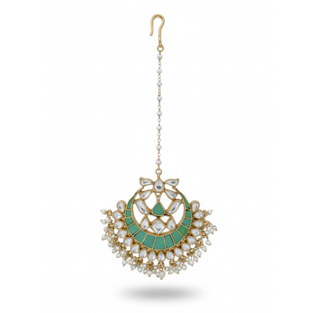 Green Kundan Pearl MaangtikkaGreen Kundan Pearl Maangtikka