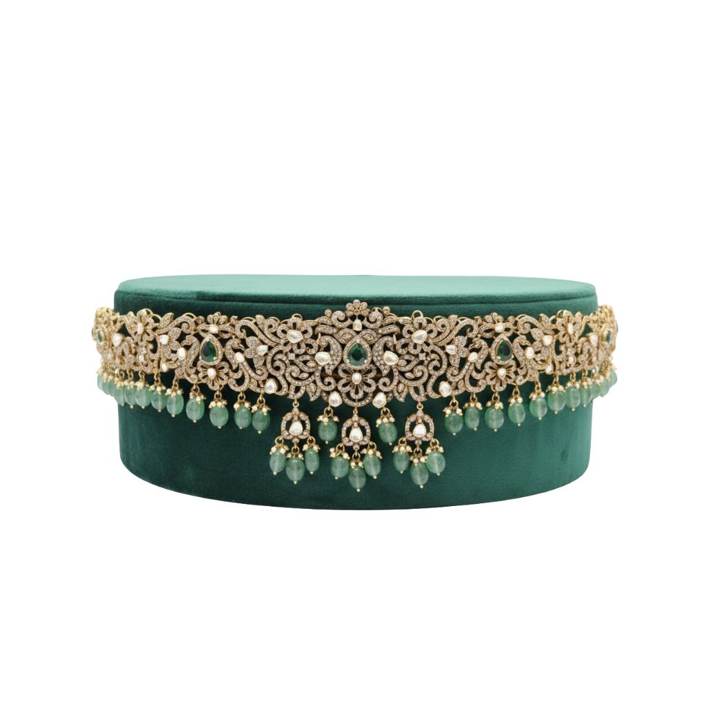 Victorian Swarovski Emerald Silver Vaddanam quantity